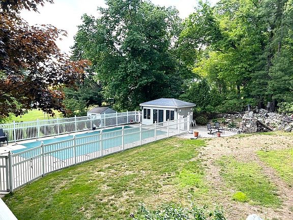 Beautiful home just in time for summer outside entertainment. Prime location at the end of the road abutting Callahan State Park one can imagine vacationing at home. Inground pool is currently closed and seller will share open and closing process with new owners. Pool house has electricity and water. Love the amazing location but not a pool? Ask. Beautiful patio area. Den leads to deck overlooking the yard & woods. Many hardwood floors. Beautiful granite in kitchen. 2 Gas fireplaces. First level offers gorgeous floor with option of one open space or two separate areas as now and offers various possibilities for work from home, home school, playroom. Invisible Fence. Central Vac. Whole house fan. Update and improvement list available as too many to list here.