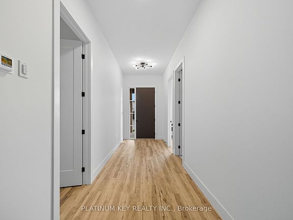 A stunning new build Bungalow with finished basement by Dwyer Homes. This 2+2 bedroom, 3 bathroom home is located on a quiet crescent in Strathroy and backing onto a ravine, surrounded by mature trees. Inside, soaring 10-foot ceilings and an open-concept design set the tone for modern living. The kitchen includes a large centre island with eating bar and a spacious pantry, opening directly to the great room and dining area with walkout to a covered deck and private yard. The front bedroom shines with natural light, while the primary suite is a true retreat with walk-in closet and luxurious five-piece en-suite. An additional four-piece bath and a convenient laundry/mudroom off the garage complete the main floor. Downstairs, the finished lower level impresses with a massive family/games room, two more bedrooms, and another full bath. This impressive home blends style and function and is just minutes to schools, parks, shopping, the hospital, and quick access to Highway 402.
