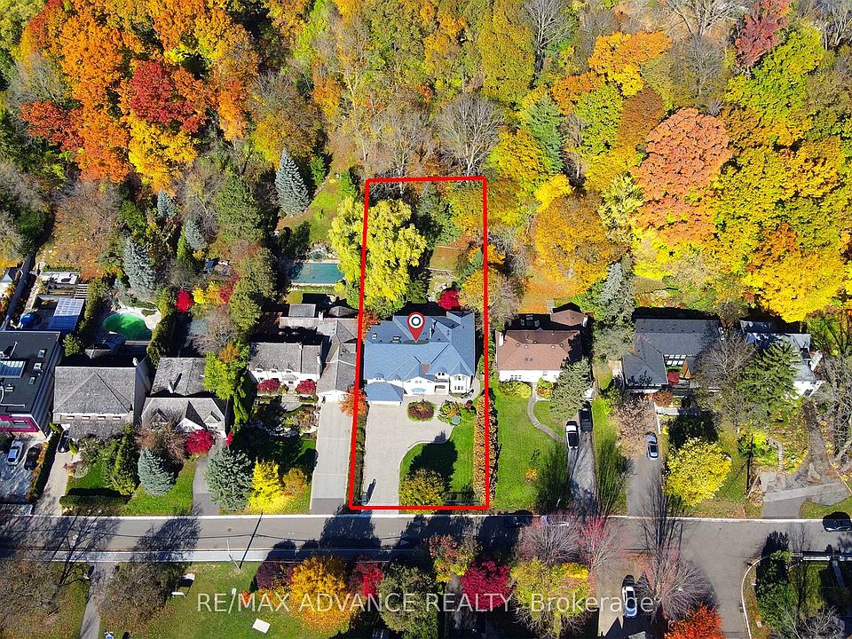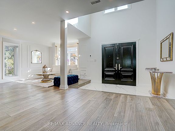 Welcome to Prestigious Hoggs Hollow! Gracefully nestled among lush ravines and steps from the iconic Rosedale Golf Club, this elegant residence blends timeless charm with modern sophistication. A stately steel gate and grand entry doors create a striking first impression. The sun-filled open-concept main floor showcases wall-to-wall bay windows overlooking one of the area's deepest private lots-your serene, tree-lined backyard oasis with endless potential. The living room's marble-surround fireplace adds warmth, while a mezzanine overlooking the grand foyer enhances the sense of space and luxury. The sleek chef's kitchen features top-tier appliances, a waterfall island, and an inviting breakfast area. Upstairs, the primary suite offers a private sitting room and Juliet balcony retreat. All bedrooms boast spa-like ensuite baths with in-floor heating. Attached garage and generous storage complete this exceptional home.
