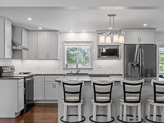 Situated on tree lined cul de sac, this beautifully UPDATED 5+ bdrm/4 bath Colonial offers all of the modern touches & flexibility of floor plan to suit all of your needs. Completely renovated open concept kitchen & dining areas provide the perfect space from cozy dinners to large gatherings. Updates continue throughout the main level’s living & family rooms, sunroom/office & 1st floor guest suite. The 2nd level includes 1 primary w bath,3 additional bedrooms & full bath. Need additional space for work, guests, or just to hang? The lower level walk out in-law suite, complete w separate entrance & garage, offers lots of possibilities. Addtl meticulous updates include: 3 renovated baths, new flooring & windows, new siding, new fencing & custom built patio w roof, ceiling fan & lighting. Located minutes from local schools, downtown, major routes & shopping, 32 Burley Farm Rd has all the character, quality & conveniences that you could ask for in a home.