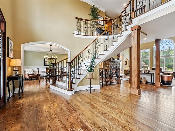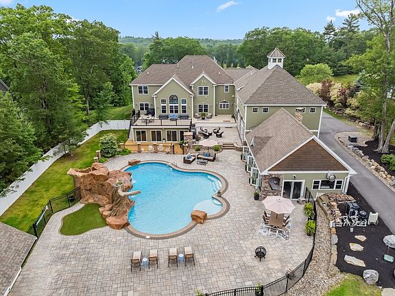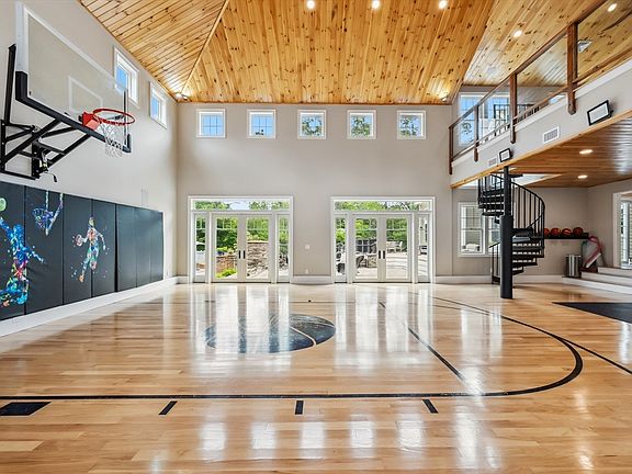 Located in one of Windham’s most desirable executive neighborhoods, this extraordinary home blends luxury and fun - designed to impress at every turn. Enter the foyer and take in the soaring great room with fir timber accents and a double-sided stone fireplace. The chef’s kitchen features high-end appliances and a spacious walk-in pantry and connected built-in lined mudroom. Upstairs, 4 bedrooms each include en suite baths, with a separate guest suite. The primary retreat boasts a knotty pine ceiling, large walk-in closet, and private balcony. The finished basement offers rustic charm with timber ceilings, live edge bar, second full kitchen, media and family rooms, plus two more bedrooms and a bright sunroom. A 3.5-car main floor garage adds convenience. The showstopper? An indoor basketball half-court with gym, loft lounge, wet bar, and home office overlooking the court. Outside oasis: sport court, inground heated saltwater pool with waterfall & slide, and 700+ sq ft pool house!