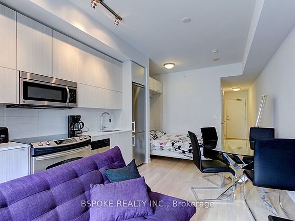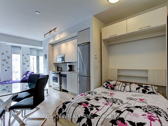 Fully furnished and move in ready, this turnkey studio in the heart of Toronto's Fashion District is the ideal pied-a-terre or city crash pad. Located in a boutique building with just 87 suites, you're steps from King and Queen West, with bars, cafes, groceries, and The Well shopping mall all close by. Inside: a smart layout, Murphy bed, stainless steel appliances, and stone counters in both the kitchen and bathroom. Comes fully outfitted with everything you need, just bring your suitcase. The building features a gym, stylish party room with fireplace, lounge, billiards/dining area, bar and kitchenette, plus a spacious outdoor terrace with BBQs. Car and bike share programs available onsite. Urban convenience, with everything at your doorstep.