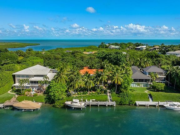 Located in the desirable neighborhood of Sunrise Cay within the private gated community of Ocean Reef Club in Key Largo, Florida, this beautiful 4-bedroom, 4-bath canal-front home offers the perfect blend of tropical living and modern comfort. Situated on 100 feet of canal frontage, this elevated residence features spacious, light-filled interiors with vaulted ceilings, open living and dining areas, and large glass doors that frame stunning water and garden views. The modern kitchen and living spaces flow seamlessly to a screened-in pool terrace surrounded by lush landscaping and swaying palms. Enjoy direct water access with private dockage and a 16,000 lb. boat lift, ideal for boating and water enthusiasts. The home's exterior showcases elegant architectural details, a grand curved staircase entry, and abundant outdoor living areas. Experience the best of the Ocean Reef lifestyle — privacy, comfort, and resort-style amenities — all just minutes from open water access.