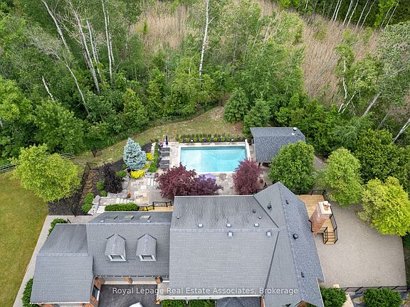 Stunning estate homeCustom in-ground poolOversized deckFire pitFreshly paved looped drivewayHigh-end finishesSolid oak hardwood floors