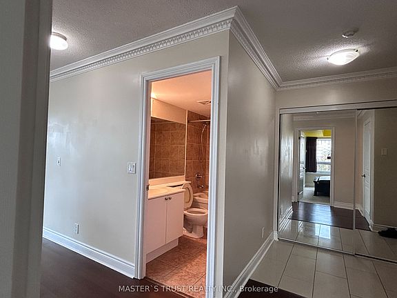 Bright and spacious modern corner unit with 2 split bedrooms, 2 full baths, approx 909 sq + Balcony. One Parking & One Locker. Large windows in all rooms. Primary w/ 4PC Ensuite. Located in the heart of the Markham Business Centre. Convenient location. Steps to city hall, restaurant, office building, supermarket, hilton hotel, unionville high school, mins to hwy 404 &407.Tenant Pays Own Hydro.