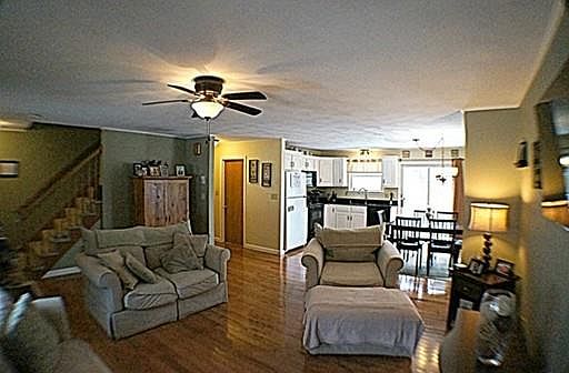 Fantastic 3 bedroom condex situated at the end of a private dead end street in the desirable CGS school district. Enter home through the inviting farmers porch and be greeted by a large open concept kitchen and living room with gleaming new hardwood floors. A newly updated first floor bath has laundry and deck off kitchen is perfect for enjoying a morning coffee. The bedrooms are all generous sized and 2 are loft style for added space. Good sized basement with walk out to back yard is perfect for storage or to perhaps finish for future living space. Recent updates include well filtration system, granite counter tops in kitchen as well as newer light fixtures. Close to shopping and highways yet secluded enough, this home is a must see.