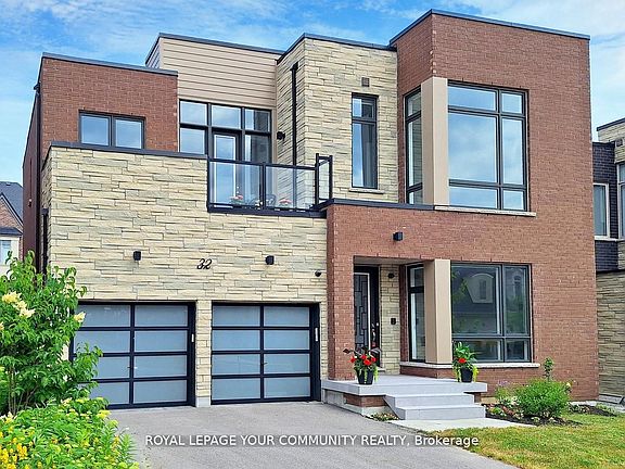 Welcome to 32 Conger Street, a modern luxury residence in the heart of prestigious Upper Thornhill Estates, offering over 4,000 sq ft of refined living space. This beautifully upgraded 4-bedroom, 5-bathroom home features soaring ceilings, wide-plank hardwood floors, and a thoughtfully designed open-concept layout perfect for both everyday living and upscale entertaining.The chef-inspired kitchen is outfitted with sleek cabinetry, quartz countertops, a large center island, and top-tier built-in Miele appliances. A custom built-in office system enhances the main floor workspace, while a professionally installed multi-zone BOS and Sonos sound system provides premium integrated audio throughout the main level, the primary bedroom, and the backyard.Wellness-inspired amenities include a spa-quality dry sauna, while the private balcony provides distant skyline views, including the CN Tower a rare and desirable feature in this exclusive neighbourhood.Set on a quiet, elegant street known for its upscale homes and tranquil atmosphere, this exceptional property is just minutes from top-ranked schools, parks, transit, and premier shopping.An extraordinary opportunity to own a one-of-a-kind modern luxury home in one of Vaughans most sought-after communities.