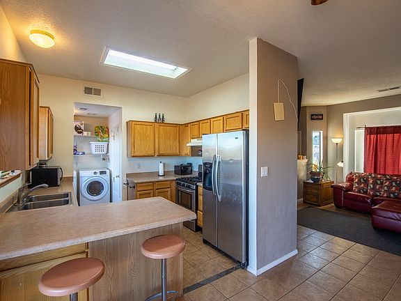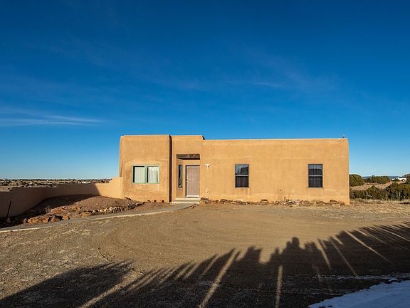 This modular home is situated on 3 acres of fenced land with a gated, private driveway. The home incorporates stucco exterior finishes to accomplish a pueblo style look, the home has tile flooring throughout the entire plan, which includes, it's 3bedrooms, 2baths, and laundry room off the kitchen. Enjoy panoramic views of the surrounding Jemez, Ortiz and Sangre de Cristo mountains that can be seen from the deck. Its spacious 4 car garage can even house an RV for whenever you want to get even closer to "rural life."