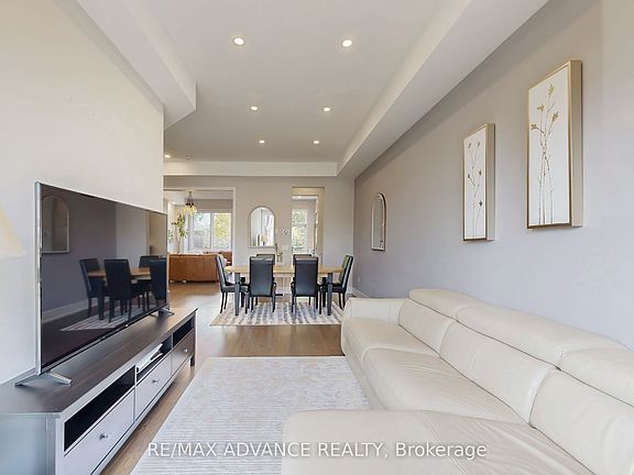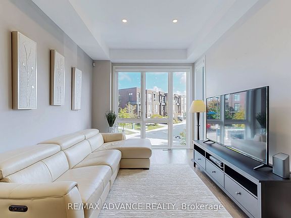 Elegant and spacious townhouse in Vaughans Patterson community, offering approx. 2,300 sq. ft. of upgraded living space! Features include 10 ft ceilings on the main floor, 9 ft ceilings upstairs, hardwood flooring throughout, and large windows that fill the home with natural light. The gourmet kitchen is a showstopper with tall cabinets, quartz counters, a waterfall island, built-in pantry, premium appliances, and a Bertazzoni 6-burner gas range. The primary suite offers a mirrored closet, luxurious 5-piece ensuite, and motorized day/night blinds. Additional bedrooms are generously sized, plus a versatile office space. Tandem 2-car garage with upgraded lighting and shelving, finished basement, and backyard with garden shed and mature trees. Backing onto a private ravine for ultimate tranquility, while being minutes from parks, schools, transit, shopping, and Hwy 407. A rare opportunity to own a modern family home with thoughtful upgrades in one of Vaughans most sought-after neighborhoods!