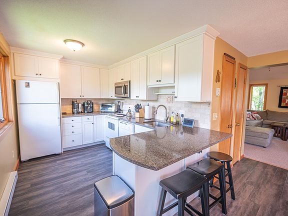 Turn key and updated doesn't even begin to describe this townhome just down from the Mount Snow ski resort. The current owners have updated every facet of the property so that you can experience downtime, not upkeep. There is a large vaulted living room with great natural light, a new stacked stone hearth and wood burning fireplace, large kitchen with breakfast bar, new counters, energy star appliances, new cabinets, a spacious dining area for apres ski, which looks out over the recently rebuilt rear deck and the beautiful mountain views beyond, new flooring throughout, a main floor full bathroom, completely renovated, three large bedrooms on the entry level and a gorgeous bath with tiled shower, a large overflow sleeping/game loft on the upper level, a great mudroom for gear storage and ski entry, an owners ski closet, washer/dryer, and more. Less obvious features include new slider, high speed internet service, new window shades, updated furnishings, and a newly insulated crawlspace with vapor barrier and closed cell foam. Combine this with convenient building maintenance, wood, trash, snow removal, and nearby shuttle service, and you just won't find more bang for your buck.