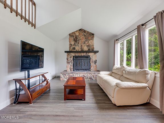 Welcome to this 4 bedroom, 2 full bathroom home. The living room features a stone fireplace while the eat-in kitchen boasts plenty of cabinets and countertop space, a full appliance package and sliders that open to a deck and patio perfect for outdoor dining and relaxation. The first floor boasts the primary bedroom, additional bedroom, full bathroom and office space for remote working. The second floor features two bedroom and full bathroom with balcony overlooking the living room. The fenced yard with mature landscaping provides privacy. Additional highlights include an attached garage with attic storage as well as an oversized driveway for off-street parking. Newer water heater, air conditioning and furnace. Don't miss the opportunity to make this wonderful property yours!
