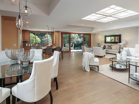 Gorgeous 2,224 +/- sf custom home completely remodeled in 2013 by Bill Campbell GC and interior by Julie Brown of Brownhouse Design. Gracious open floor plan, completely level - no steps, bay window dining w/John Pomp fixture & automated blinds. Elegant granite stainless kitchen overlooks great room. Owners' suite w/European style Paldao built-ins, CA Closet walk-in closet and luxury bath w/Pental quartz countertops, Crossville tile flooring, Toto toilet, heated floor. Den w/closet and large skylight, next to second bath is technically NOT a second bedroom because there's not a window. Spacious built-in office for two. Fantastic natural light, tall ceilings, eight skylights. Spectacular wall of glass doors to tiled patio & peaceful extended private garden w/outdoor lighting. Abundant storage, flush inset White Oak wood cabinets. Tesla Powerwall whole home battery backup, 2 car attached garage & attic storage. Prestigious gated N Los Altos community near Village, w/2 pools, spa, bocce.