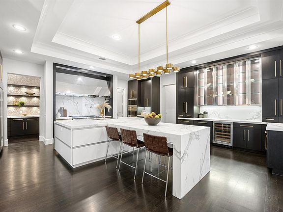 Step into sophistication with this exquisite residence nestled in the desirable gated and guarded community of the Lawn at Glen Abbey in North Dallas. The home offers modern finishes, open-concept living, and a layout designed for both daily ease and elevated entertaining. A grand interior welcomes you. Imagine a sweeping entry, high ceilings, and a beautifully appointed great room that flows seamlessly into the gourmet kitchen featuring high end Wolf appliances. The kitchen is designed for both form and function with premium cabinetry, a generous island for gathering and space to host lively dinner parties or casual breakfasts. Featuring two primary suites, one on each level, this home delivers versatile living arrangements ideal for in-laws or extended guests. The lounge area blends warm modern design with elevated functionality. Rich wood cabinetry with sleek brass hardware offers abundant storage, while dramatic stone countertops with striking veining create a bold, luxurious focal point. A built-in beverage cooler and ice maker set the stage for entertaining. The media room is equipped with surround sound and is ready for family movie night. Step outside to a backyard built for connection, where a refreshing pool and spa invite you to unwind, an outdoor grill makes hosting a breeze, and a glowing fire pit sets the scene for memorable evenings with friends and family.