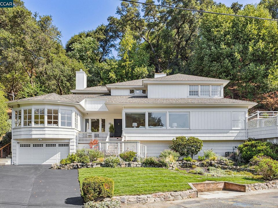 Sitting proudly in the Orinda Country Club hills with views overlooking Lake Cascade. 4 BR, 3.5 BA, 3163 sf traditional beauty, with unparalleled street appeal. Fully landscaped, flat front/side backyard. Cathedral ceilings in living areas and bay windows that soak in views and light. Beautiful large quality wood windows in every room. A well-appointed kitchen with plenty of workspace, an adjacent family room, formal dining room, and breath-taking spacious living room with wood burning fireplace. All flowing seamlessly for entertaining large and small gatherings and a busy family. Gorgeous light wood floors throughout the living area. Street level there are 2 nice-sized bedrooms and a full bath off the kitchen and a laundry/mudroom. Up a gorgeous formal staircase, there is a sumptuous primary suite with huge windows and views of Lake Cascade on one side and private back deck on the other. Substantial tiled master bath w/ bathtub, shower, separate toilet and a large cedar walk-in closet. Another well-sized fourth bedroom and full bath. .59 acres with stunning views, landscaped, decking for entertaining and barbecuing and a large flat side lawn with plenty of room to roam and play. Miramonte schools, close to town. Hike the hills and loop around Lake Cascade. Magical!