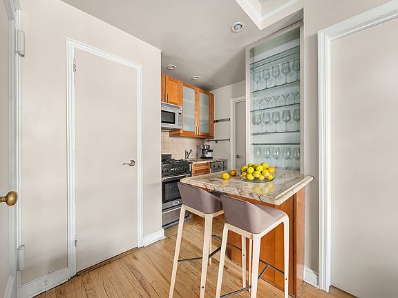 Welcome to Apartment 5C at 32 Downing Street. A sun-filled, top-floor one-bedroom home nestled in the heart of the West Village. Perched above the treetops at the corner of Bedford and Downing, this rare corner residence offers both charm and tranquility, with open city views and warm natural light streaming in from multiple exposures. Inside, classic pre-war character meets thoughtful updates. Original casement windows line the walls, hardwood floors run throughout, and custom built-ins add both functionality and visual appeal. The open-concept kitchen is designed for everyday comfort, complete with a breakfast bar, full-sized appliances, and ample storage. The living area feels open yet cozy, with sweeping views south and west. The bedroom is generously proportioned and can easily accommodate a king-size bed, with built-in closets providing smart storage solutions. The bathroom features vintage-inspired finishes with modern upgrades and a sky light. Set in a well-maintained pre-war co-op with elevator access, Apartment 5C offers the rare combination of character, convenience, and top-floor privacy. Residents enjoy access to on-site laundry, bike storage, a secure video intercom system, and private storage. Cats are welcome, and subletting is permitted after two years of ownership. Located in one of the city's most cherished neighborhoods, you're just moments from beloved cafes, boutique shops, and renowned dining destinations, all while being close to multiple subway lines. FEES: Subtenant Application Processing Fee (Non-Refundable) $700 SubtenantBuilding Application Processing Fee (Non-Refundable) $400. SubtenantCredit Check Fee (Non-Refundable) $20 per applicant SubtenantSecurity Deposit (Refundable)$750.00 Upon Approval