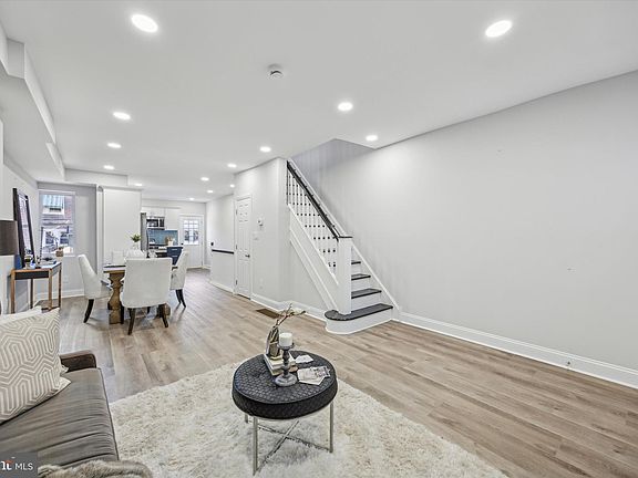 Escape from the hustle and bustle of your day-to-day inside this Mount Airy address. The 3-bed, 2-bath home has been completely renovated into a modern, yet charming masterpiece that starts from the outside with a Tiffany blue door. Turn the key to find a stunning living area inside, including a linear navy blue and gold accent wall that adds a punch of personality. Further inside, homeowners will have enough space for a small dining area—perfect for hosting. Another pop of color shows in the kitchen, where navy blue base cabinetry juxtaposes white wall cabinets. A stormy blue subway tile backsplash adds another dimension of color, as well as white quartz countertops with grey veins. Stainless steel appliances are all included. Downstairs, a fully-finished basement with carpet provides another living area that’s ideal for families. There are also plenty of closets for storage, as well as a full bath. On the second level, find three bedrooms with ample natural light and closet space. Plus, a full bath to wash away the day. The home also features a fenced-in backyard with a small patio, where grilling outside and alfresco fetes will come easily.