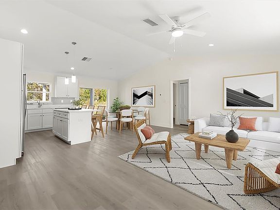 One or more photo(s) has been virtually staged. NO HOA and the BEST PRICED NEW CONSTRUCTION CONCRETE BLOCK HOME in the area. This property also qualifies for USDA financing with $0 down. Built by Corban Construction, a respected local builder with over 20 years of experience, this high-quality home features 3 bedrooms, 2 bathrooms, and a 2-car garage with an open-concept layout that seamlessly connects the kitchen, dining, and living areas. Thoughtful upgrades include crown molding, a screened-in back porch, stainless steel appliances, cabinetry in the laundry room, a stylish kitchen backsplash, a floored attic space for additional storage, and a beautiful tray ceiling in the primary bedroom. The primary suite offers a private bathroom and a spacious closet, while the additional bedrooms provide generous space for family, guests, or a home office. This home is move-in ready with energy-efficient construction, modern finishes throughout, and a 1-year home warranty for added peace of mind. Located less than a mile from Lake Weir, you are just minutes from waterfront dining at Gator Joe’s and Eaton’s Beach, along with shopping, parks, and outdoor recreation. Schedule your showing today.