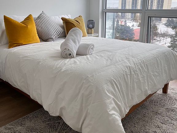Fully Furnished Sun-Filled Open Concept Two Bedrooms Plus Den Corner Suite with Unobstructed South-West View. TV, Utensils, Cutlery Included! Functional Separate Den. Two Full Baths. Corner Unit at Emerald City. Feature a 9ft Height Ceiling, Open Concept Living Room with Floor To Ceiling Large Window. Motorized Blinds. Ensuite Laundry. Steps to Fairview Mall, TTC, Sheppard Subway Station. Close to School, Grocery, FreshCo, Library, Cinema. Close to Highway 401/404.