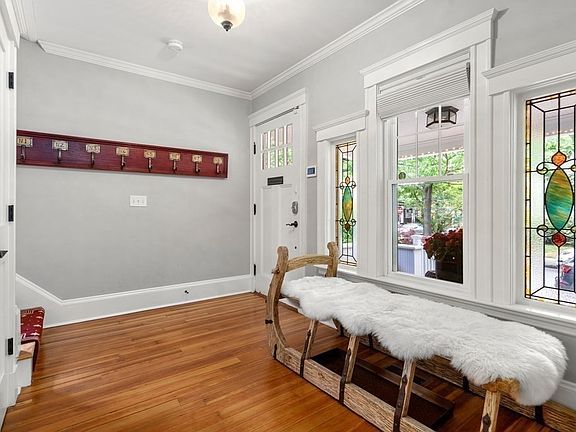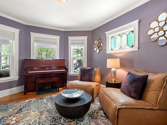 Rare, spacious, exquisite single family home on a quiet tree-lined street minutes from Davis Square, Somerville community path, and the Ball Sq. Green Line Extension. Renovated from the studs in 2015, 4 floors of expansive living space include 4 bedrooms, 4.5 baths and a glorious primary suite with a giant walk-in closet, en-suite bath, and attached sun porch/office. A spectacular chef’s kitchen with marble island, granite counters, closet pantry, and Thermador appliances opens up to a private deck for indoor/outdoor dining. Gather by the cozy gas fireplace in the living room or in the finished basement family room with wet bar. Work from home in multiple flexible spaces throughout. Sunlight pours through stained glass and new windows (with custom Hunter Douglas shades) onto glowing wood floors. Three porches, lovely front yard garden, gated backyard for your furry friends, driveway with room for 4 cars, and detached 2 car garage complete this urban oasis.