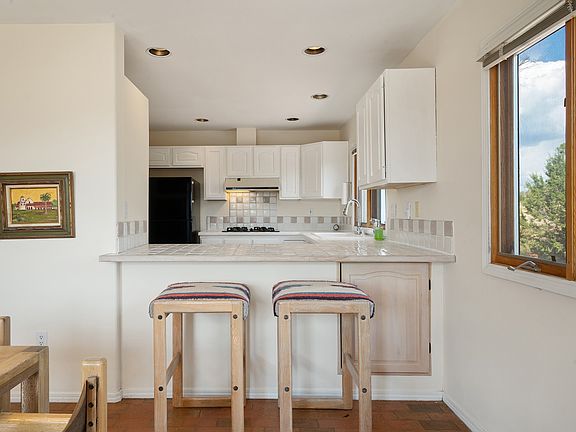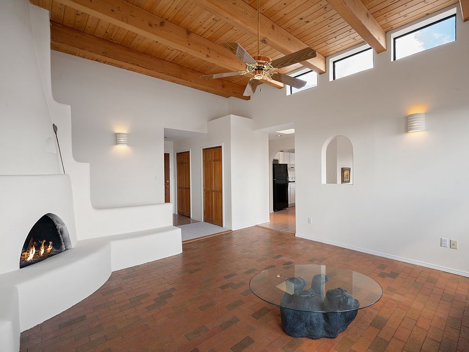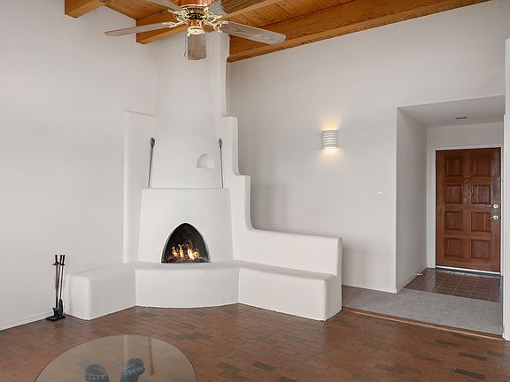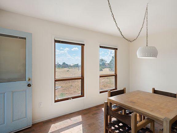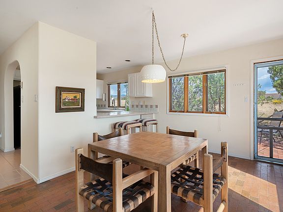 An abundance of natural light, a cozy living room with brick floors, beams with T & G and kiva fireplace greet you when you enter this home. The owner's suite has an inviting and relaxing feel to it with its brick floors, beams with T & G. The kitchen and dining room flow nicely together for entertaining, or those family get togethers. Feel comfortable all winter long with a brand new boiler, and glass replacement on many of the windows. Conveniently located on a corner lot just off the paved road.