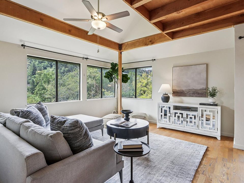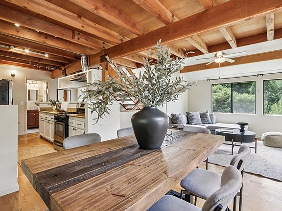 Located in the desirable flats of Fairfax, this 3-bedroom, 2-bathroom home offers both comfort and convenience. Just steps from White Hill Middle School, a large field with a baseball diamond, and the Glen Fire Road Trailhead leading to Loma Alta Open Space Preserve, it's perfectly positioned for everyday living and outdoor adventures. The open-concept kitchen flows seamlessly into the dining and living areas, creating a welcoming space for gathering. Skylights and large windows fill the home with natural light and frame peaceful treetop views, while open-beamed ceilings add warmth and character. In addition to the three bedrooms, two versatile flex spaces provide options for an office, playroom, or creative studio. Multiple outdoor decks, a shaded patio, and a level lawn area offer plenty of room to relax, play, and entertain. The community pool provides another inviting place to enjoy sunny days. Recent updates newer furnace, and newer water heater.