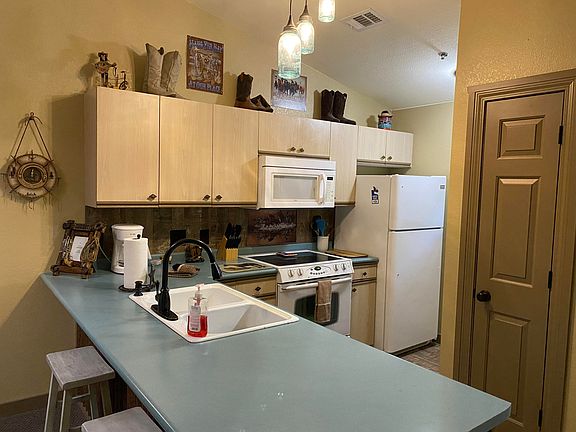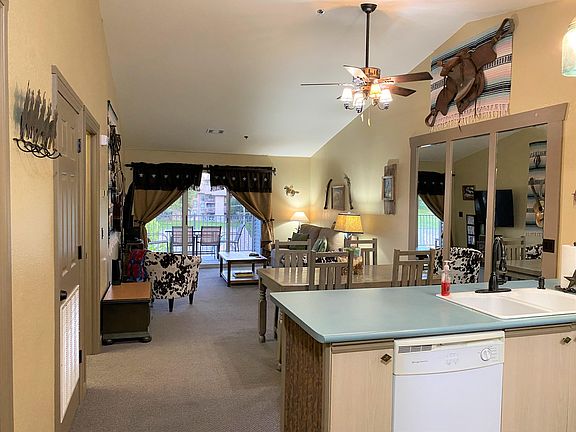 Howdy partner! This updated 1 bed/1 bath cowboy themed, walk-in condo is located in Fall Creek Resort. Currently in nightly rental and comes fully furnished. Condo features a full kitchen with a breakfast bar, vaulted ceilings and an open floor plan. The bedroom features a king bed with a one-of-a-kind headboard. Commercial carpet has been recently updated and the furnishings have all been well kept. Enjoy a cup of coffee and the golf view from the covered patio. The cowboy in all of us can appreciate this condo, whether you are using it for nightly rental or calling it home. Located minutes from most of Branson's shows, shopping, and dining.