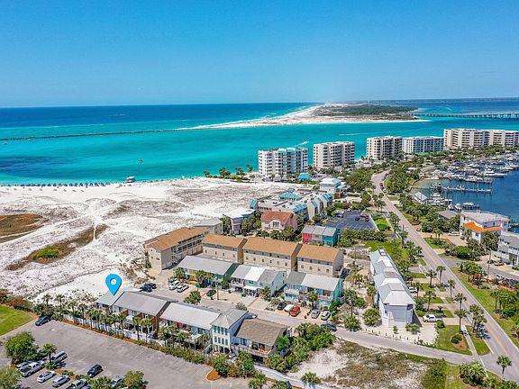 Dreamin' of sparkling white sand in your backyard & being surrounded by glistening views of the Gulf of Mexico! This is your opportunity to get that & MORE! This 2 Bedroom, 2 1/2 Bath, w/ Bonus Space (possible 3rd bedroom conversion), SOUTH END UNIT Townhome on Holiday Isle is your New Slice of Paradise! Exceptional locations like this rarely come on the market at this price! Making this the ideal primary, 2nd home, or Vacation Rental Investment! Imagine your friends & family relaxing or entertaining on the approx. 339 sq foot expansive, ''L'' Shaped balcony. This balcony offers the most Exceptional Views of the boats traveling through the East Pass & the Emerald Green Waters of the Gulf! The Kitchen was tastefully remodeled in 2016 with Hickory Cabinets, Stone Backsplash, & Island. (More) The open floor plan. The open floor plan & high cathedral ceiling of the 2nd floor main living space is accentuated by panoramic coastal views from the multiple windows & glass doors. You can't help but be at peace with the soft neutral tones of the home & the spectacle views from your main living areas. Watch the breathtaking Sunset & Parade of Boats cruising past from your Sofa! There is also a large sunroom off of the living area that would be ideal to convert into a bunk-room, 3rd bedroom, or bonus space. A second sunroom located off the kitchen area connects the home to the awesome Balcony. This would be the perfect place to have an herb garden or hobby space. There is also a 1/2 bathroom located off of the main living area to accommodate guests. The Master Bedroom with ensuite Master Bathroom & the 2nd Bedroom with ensuite Full Bathroom, & Laundry area are located on the 1st floor. The spacious Master Bedroom is large enough to accommodate a King Sized Bed, has 2 closets, & offers a glass sliding door that steps out onto a covered deck. The Master Bath feature dual vanities, linen closet, & tub/ shower. The 2nd Bedroom is positioned at the front of the home, spaced out to give added privacy to the Master Bedroom. The prime location at the south end of the complex offers ample parking for 3 vehicles. There is also exterior storage. The greatest value of this home is its Location & the Lifestyle it offers its owners & guests! Holiday Isle is a truly unique location that you will not find anywhere else! This peninsula offers world renowned beaches to the south which are connected to the Harbor on the north by the East Pass ushering the Largest Private Charter Fishing Fleet in all of North America directly through the mouth of the East Pass. This area offers the best of the Beach & Boating World! Spend your day on the beach, snorkeling in the clear water & then hop on a water taxi to enjoy the nightlife, dining & entertainment on the Harbor in the evening! Life is Good here, Don't Miss this Unique Opportunity!