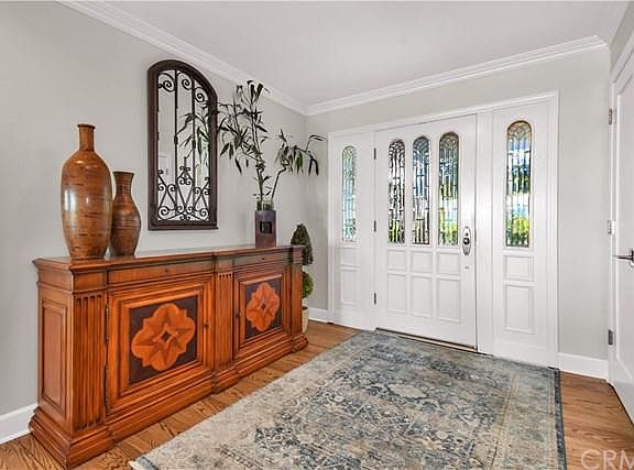 Located near the end of the cul de sac is this 6 bed/ 4 bath home that has been remodeled with attention to detail and offers city light views. The home is nicely landscaped, fenced, and surrounded by the Land Conservancy with access to the preserve and nature trail. There is a built in barbecue with fire pit and pergola and nighttime lighting. The home has vaulted ceilings, newer large windows that make it very open, bright, and welcoming. Hardwood floors and shutters throughout the house. The upgraded kitchen has built in appliances, quartzite countertops and a cozy built in booth that seats 6. All recently remodeled bathrooms have quartzite countertops. There is a brand new wine room chilled at 58 degrees. The family room has a built-in entertainment center and fireplace. There are two master suites one on each level of the home. The upstairs master suite has a 270 degree view, gas fireplace with hand painted Walker Zanger tiles and mantel. The remodeled master bath has a carerra marble shower and shower head with options, a soaking tub to take advantage of the views. There is a separate office building with built-in custom cabinets, quartzite countertops, and 3/4 bath. The remodeled home has many extras not to be missed. Call for an appointment.