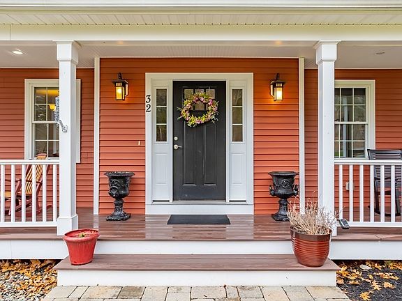 An inviting farmers porch welcomes you to this custom crafted, quality built & meticulously maintained Cape farmhouse. At the heart of this beautiful home is an upscale center island kitchen updated in 2021 with quartz counters, new fixtures & Beko stove with 5 burner gas cooktop opening to a sun-filled family room with cozy gas fireplace. Pocket doors enclose an enviable 1st floor office with custom built-in cabinets & charming window seat. The 2nd floor features 4 bedrooms & 2 baths including a main bedroom suite w/ walk-in closet & lux bath graced with dual sink vanity & generous tile shower. Enjoy the warmth of handsome hardwood floors, the beauty of custom millwork & the convenience of an enviable mudroom, recent carpets & interior paint. Need more space? Incredible expansion opportunity awaits in the huge bonus room above the garage & unfinished lower level. Unwind on the deck overlooking a manicured yard featuring lush lawn, perennial-filled gardens & abutting woodlands. A gem!