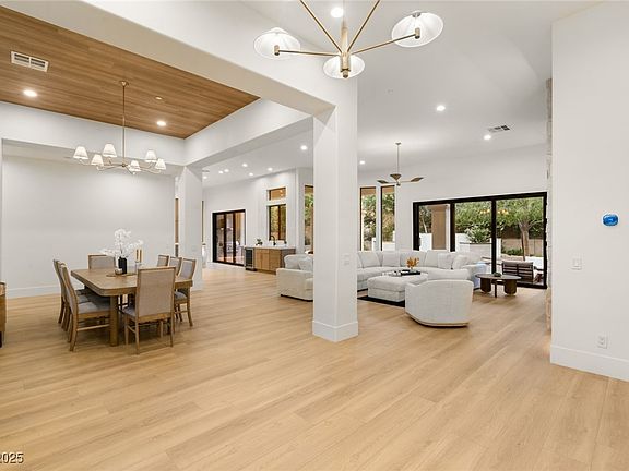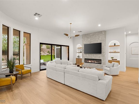 Nestled on an oversized corner lot within the guard-gated Anthem Country Club, 32 Hassayampa Trail is a fully reimagined luxury home offering 5,756 sq ft of refined living. This 6 bed, 6 bath residence lives as a single story, with the primary suite and three en-suite bedrooms on the main level, while two additional bedrooms and a loft/bar area await upstairs. High-end finishes throughout, new AC units, and an oversized 3-car garage enhance its appeal. Expansive glass frames breathtaking Strip views, while the oversized resort-style backyard boasts a pool, spa, and large grass area ideal for entertaining. Anthem Country Club provides world-class golf, tennis, dining, and social amenities, creating a lifestyle of elegance and connection. Rarely does a property of this scale, style, and setting come available—offering a truly exceptional opportunity in one of Henderson’s most prestigious communities.