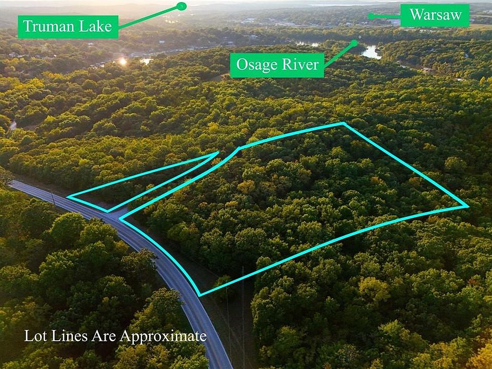 Dreaming of your own retreat near Truman Lake and the Osage River? Offering paved blacktop frontage, utilities at the road, and endless potential. Build a barndominium, cabin, RV pad, or forever home—just 10 min to Truman Lake and Osage River boat ramps, 8 min to Walmart and downtown Warsaw, and 4 min to major highway access. Electric and high-speed fiber are at the road. Perfect for recreation, homesteading, or a lake-life getaway. Parcels like these, so close to lake and river access, are becoming hard to find—schedule your showing today!