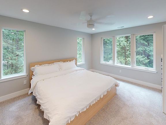 Must see this 2018 contemporary masterpiece nestled away near Lake Whatcom. Chef's kitchen & a day-spa master suite. Large covered deck just off of the main living space. Offers amazing views of the forest and serene setting. Quartz counters & island, SS appliances, stunning gas fireplace, surround sound, high tech cabling, main level bedroom & picture windows. 1 year home warranty included.