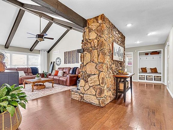 Welcome home to this amazing Ranch nestled in Hubbard Place. This beautiful property includes a 15x18 covered front porch, 2 wood burning fireplaces, 3 bedrooms and 3.5 bathrooms. The primary bedroom includes an en-suite bath. Conveniently located and updated main level laundry. New inviting kitchen with tiled backsplash, bright white cabinets, and custom granite countertops. Ample storage in the finished walk-up basement that includes a second living area, full bathroom, non conforming bedroom, concrete storm shelter, exercise room, income generating salon or multiple purpose room. Walk up to enjoy your 12x22 wood deck in the fully fenced backyard. This home is located near schools, parks, and local amenities. Don’t miss the opportunity to make this Ranch in Hubbard Place your new home! All appliances and trampoline are staying.
