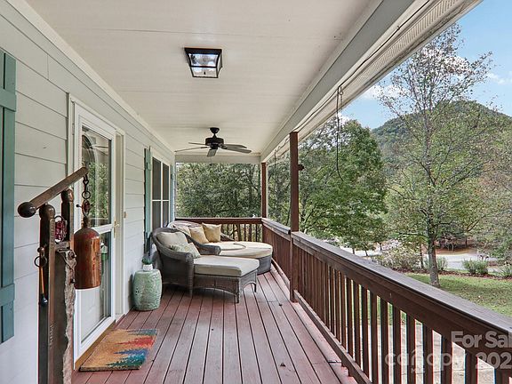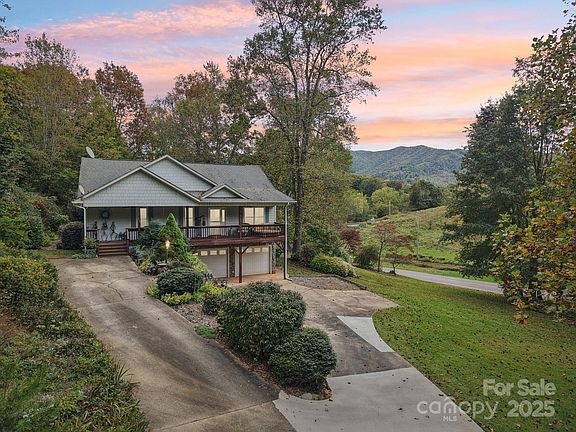 Welcome to 32 Indian Hills Loop — a beautiful contemporary retreat nestled just 15 minutes from Waynesville, NC. This spacious 3-bedroom, 3-bathroom home spans 2,413 sq ft and sits on a gentle, 1.05-acre corner lot offering year-round mountain views and a peaceful, private setting. Built in 2001, the home combines comfort and style with vaulted ceilings, a light-filled open floor plan, and wood floors throughout the main level (with tile in the bathrooms). The heart of the home is a large kitchen featuring granite countertops, stainless steel appliances (including a new gas oven/range and microwave), abundant cabinet space, a breakfast bar, and a pantry — perfect for home chefs and entertainers alike. A separate dining room is for more formal occasions. Enjoy main-level living with laundry on the main floor, a generous primary suite with a walk-in closet, jet tub, tile walk-in shower, and double vanity. Off the living space, a spacious 17x15 conditioned sunroom offers year-round comfort and plenty of views. The lower level features a third bedroom and full bath — ideal for guests, or multi-generational living. The oversized 2-car garage provides deep parking bays and extra storage. With both upper and lower driveways, access is a breeze. Outside, relax on the covered front porch or entertain on the large back deck while overlooking your garden, nature trail, and the serene surroundings. The detached 23x18 storage building is equipped with electricity and water, offering great flex space. Additional features include a water softener, an on-demand hot water heater, and a newer refrigerator, washer, dryer, and oven/range. Whether you're looking for multi-generational functionality, a private mountain getaway, or a full-time residence with convenience and style, this home delivers it all. No yearly HOA fees, as the road maintenance agreement calls for a prorata share only when road repairs are needed.