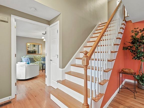 This PRISTINE contemporary Cape is nestled amongst tree lined backyard in sought after cul de sac neighborhood & offers you the privacy you have been looking for! Upon entering you will love the gorgeous HW flrs, & sun filled rooms. Cozy up in the Living rm by the corner fireplace. The Dining & Sunroom are connected w/ French doors perfect to open up for entertaining. A slider provides access to the outside deck. Enjoy cooking in the gourmet Kitchen featuring white cabinets, stunning quartz countertops, center island, tile backsplash & pendant lighting. The Family rm is complete w/ built ins & unique glass doors.Upstairs you will find the Primary Suite offering an abundance of closets & storage space, private bath & place for sitting/office space. A 3rd Bath & 3 add’l spacious bedrooms all feature HW flrs & plenty of closet space. Your new home has a composite deck in the front & side yard a stone pathway & 2 car Garage! Close to Shopping, Schools, Restaurants, parks & much more!!