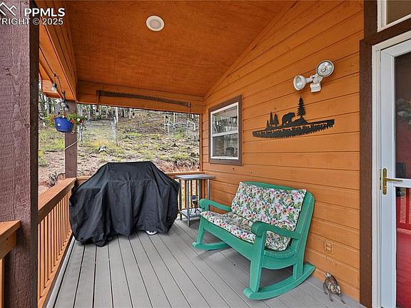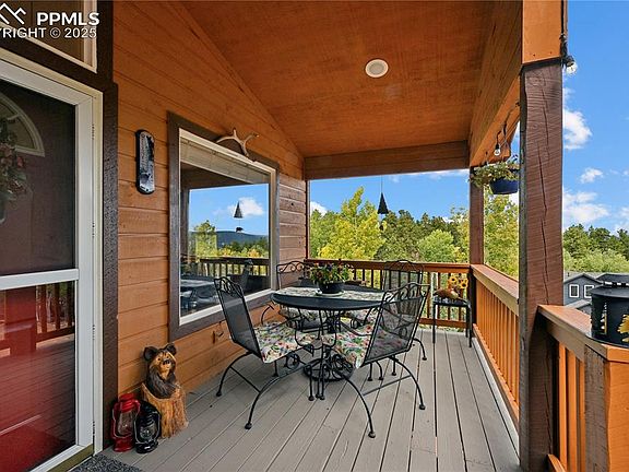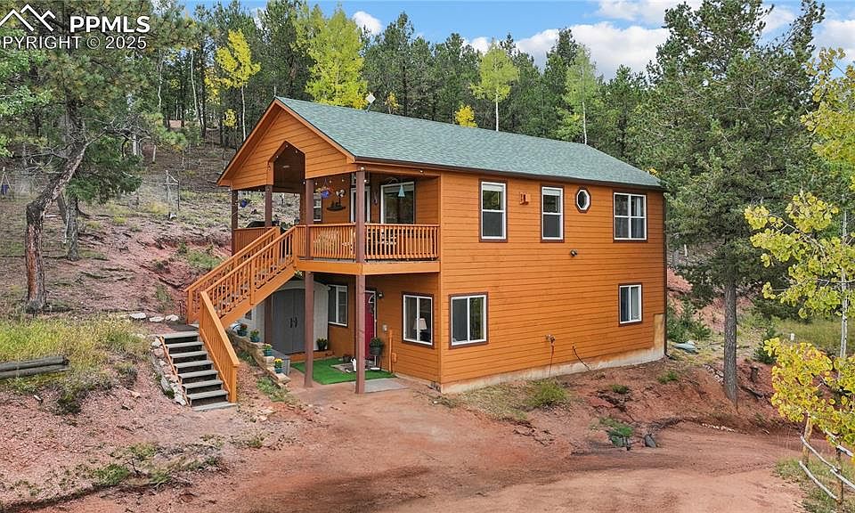 Discover the perfect blend of mountain charm and convenience in this beautifully maintained cedar-sided home. Just minutes from town, this retreat offers vaulted ceilings, rich wood flooring, and an abundance of natural light throughout. Step outside from the living room onto a covered 192 sq. ft. deck — an ideal spot to soak up the sunshine and mountain air. The open kitchen is spacious and inviting, perfect for entertaining or everyday living. On the main level, the primary suite provides comfort and privacy with sweeping views of the Rampart Range. The lower-level family room offers a cozy walk-out space accented by striking log banisters. Enjoy the comfort of a newly installed ventilation system paired with light and heating in the master bath. Practical upgrades include a high-producing well and completed fire mitigation for peace of mind. With a voluntary annual road maintenance fee and no restrictions on Airbnb, this property has excellent potential as a personal getaway or income-producing rental. Two additional lots are also available, giving you room to expand or enhance your investments.