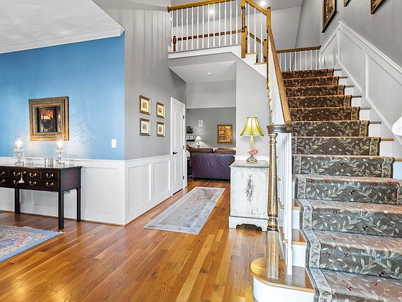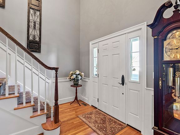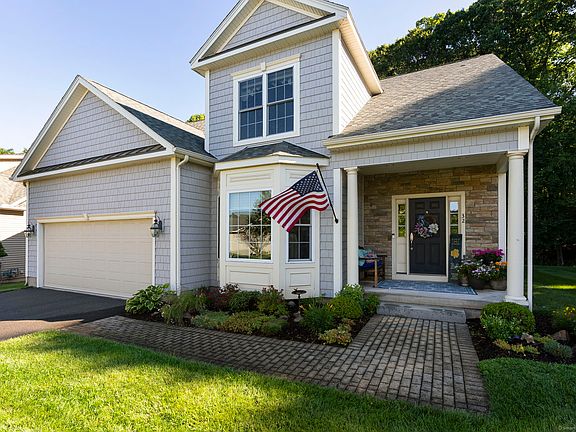 This custom built home at Riverpark Crossing is not only a premier lot location, but is an enhanced model with front bay window, customized gourmet kitchen with butlers pantry , family room with floor to ceiling stone fireplace,( heating fan & r three season sun room and two oversized walk-in attics storage with sub flooring. The private backyard is bordered by Bulkeley Park Woods, trails and CT River where you can walk/hike the many trails. The gourmet kitchen features built in hutch, SS appliances, double oven (convection & standard), 6 burner gas cook top, pot filler, over-sized refrigerator, and industrial vent hood. The countertops are granite with leather finish counters & tumbled marble backsplash. The kitchen opens up to a butler's pantry and a three season sun room with cathedral ceiling with sliders to an oversized and private rear deck. The family room has cathedral ceiling, wainscoting throughout, corner fireplace with bluestone hearth & mantel and surround sound. The spacious dining room features a bow window and wainscoting. The primary bedroom on the first floor is complete with a whirlpool bathtub, TV hookup & television and heated floor with timer, custom closet. Upgrades to the first floor include crown molding, custom shades/blinds, speaker sound system, oak flooring. The second level has two generous bedrooms w/a full bathroom, 2 walk-in attics. Conveniently located moments to shopping, restaurants, medical facilities and easy access to highways There are two walk-in attics 2719 and 22x24 Fireplace in family room has a heating fan & remote