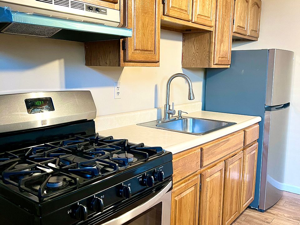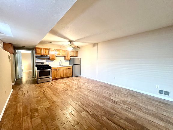 The unit is on the basement(just a few stairs down), features brand new tile flooring, is freshly painted, and has newer appliances.
