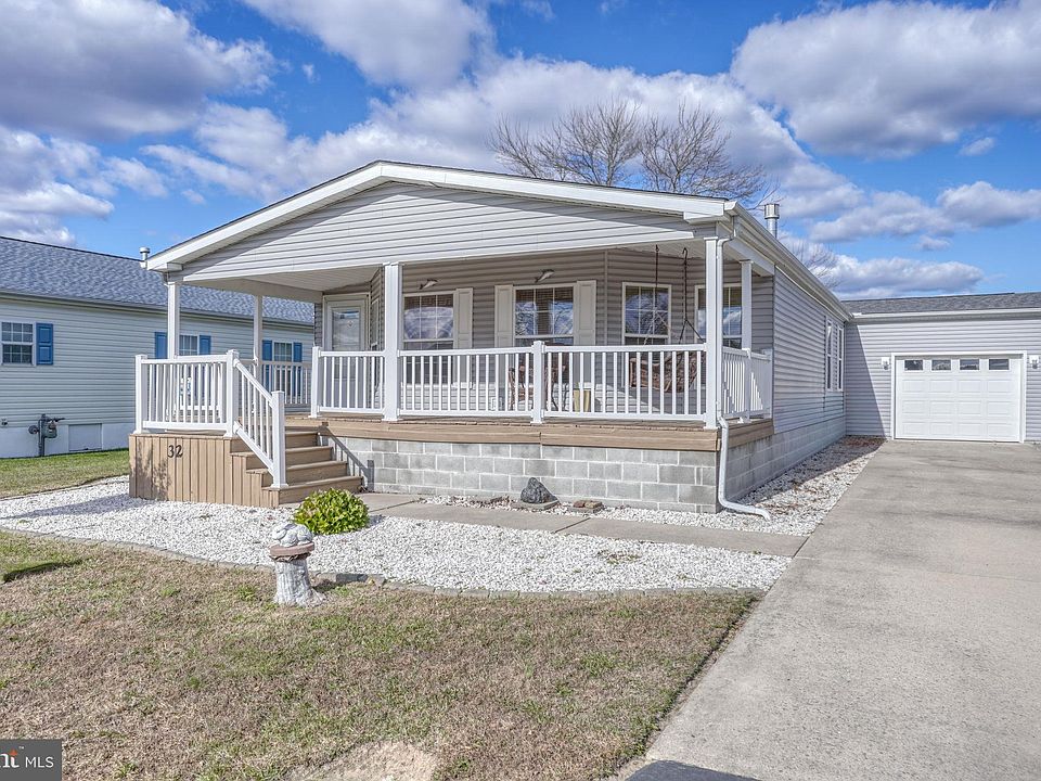 Welcome to easy coastal living in this well maintained 3 bedroom, 2 bath double-wide on a permanent foundation in the inviting 55+ community of Sussex West. A charming front porch with a swing sets the tone, leading into a bright, spacious interior. A large kitchen complete with island, prep sink, and abundant cabinetry is the perfect place for cooking, gathering, and everyday comfort. The generous primary suite offers a walk-in closet, dual vanity, and an oversized walk-in shower. At the rear of the home you will find two additional guest rooms and full bathroom. This home also features a 1-car attached garage and extended driveway for ample parking, backs to peaceful green space, and includes a new roof and furnace (2023) for added peace of mind. Sussex West is known for its vibrant lifestyle – residents enjoy an indoor pool, clubhouse, dog park, bocce, horseshoes, and direct access to the Lewes–Georgetown Bike Trail plus seasonal access to the outdoor pool at Colonial East MHP. At nearly half of the current market rate, the monthly lot rent of $687 covers trash pickup and snow removal, with optional Boat/RV storage available for an additional fee. Ideally located just minutes from historic Lewes, area beaches, Tanger Outlet shopping, local dining, and healthcare, this home offers a perfect blend of comfort and convenience. Buyer subject to park approval.
