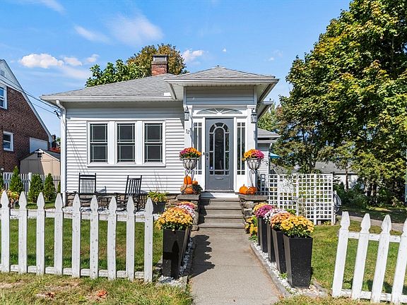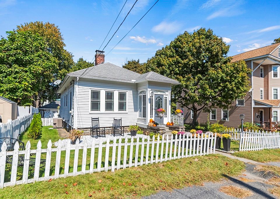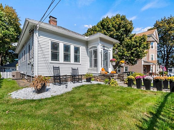 Here is the charming white picket fence home with the beautiful curb appeal you’ve been searching for! A sun-filled entry welcomes you into the inviting living room featuring hardwood floors and a cozy fireplace. The spacious kitchen boasts a center island with breakfast bar and stainless steel appliances, perfect for cooking and gathering. Two first-floor bedrooms and a 3/4 bath with convenient laundry hookups offer easy single-level living, while French doors lead to a delightful two-season porch. Outside, enjoy a wraparound back deck overlooking the fenced-in backyard with a newer retaining wall. The impressive 5-bay garage includes a partially finished, heated section ideal for a game room, hobby space, or workshop. Central air adds year-round comfort to this picture-perfect home. Your new home is tucked away, yet just minutes from shopping, restaurants and more!