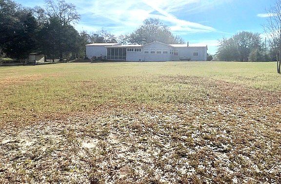 Welcome home to this 2547 sq ft beautifully maintained manufactured home on 3 peaceful acres. Space is not lacking in this home. The front of the home features a covered porch which can be accessed by steps or by the convenient ramp. Inside you begin with a large living room and a view of one of the sun rooms. Beautiful wood look laminate floors are throughout the entire living space with carpet only in the bedrooms. Through the living room you will find the oversized primary suite with a sitting room or home office. The primary bathroom is spacious and features a newly remodeled shower, double vanity, step in bathtub, linen closet and a very large walk-in closet. The additional 3 bedrooms and bathroom are on the other end of the home away from the primary suite. The additional living space features an open concept kitchen, dining area and family room. Enjoy being in the kitchen with beautiful cabinets, granite counters and a large kitchen island with seating. The dining area which is large enough for a table to sit 6+ separates the kitchen from the family room where you can relax in front of the fire. Continue the tour to two sun rooms. One is currently set up as a relaxing seating room while the other has another dining table and a wall of storage. Off of the kitchen you will find the large laundry room along with a walk-in pantry. Through the kitchen you walk down a few stairs to a screened in porch that leads to the double garage. Outside you will find 3 peaceful acres and 2 outbuildings. One outbuilding is used for storage while the second use to be a massive workshop. All of this plus you are right down from Lake Eufaula!