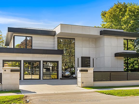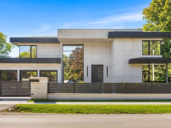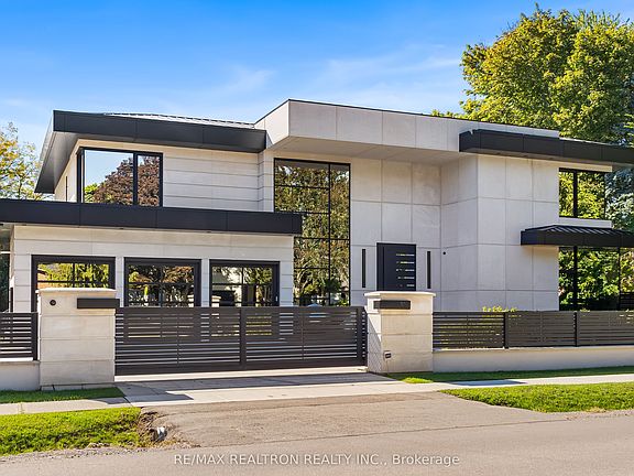 Gated Modern Masterpiece in Prestigious Bayview Glen. A striking showpiece in the exclusive Bayview Glen community, this estate is defined by bold design and uncompromising luxury. The exterior pairs Indiana limestone slabs with ACM panels, European aluminum tilt & slide windows, and a lifetime metal roof. Remote-access security gates and an 11-foot European pivot door create a dramatic first impression. Inside, soaring 24-foot ceilings define the family room, anchored by a marble fireplace and framed by floor-to-ceiling windows with integrated speakers. A floating glass staircase and elevator connect all three levels. Comfort is unmatched with heated main and lower levels, plus heated garages, driveway, steps, walkways, and pathways leading to the cabana. The chefs kitchen offers custom cabinetry, Thermador appliances, a Gaggenau wine cooler, and a waterfall island with leathered marble countertop, complemented by a full prep kitchen. The formal dining room is highlighted by an illuminated onyx wall and designer chandelier, while the living room boasts a backlit onyx fireplace as a dramatic focal point. The primary suite is a private sanctuary with boutique walk-in closet, balcony, fireplace, and spa-inspired ensuite with steam shower. In total, the home offers 5+1 bedrooms and 10 bathrooms. The entertainers lower level features a 26-foot bar with Mario Romano backsplash, 7.2 Dolby Atmos theatre with 150 screen and skylight, wine cellar, nanny suite, fitness room with steam sauna, and a spacious lounge with 100 fireplace and walk-up to yard. Outdoors, southwest exposure frames a resort setting: a Todd saltwater pool, Jacuzzi with independent controls, cascading waterfall with gas fireplace and heated pathways. The cabana doubles as an outdoor kitchen with barbecue, fridge, cabinetry, outdoor TV, shower, 2-piece bath, and built-in speakers. An LA-inspired showpiece in Bayview Glen, blending contemporary design with world-class finishes.
