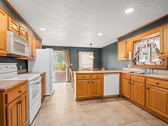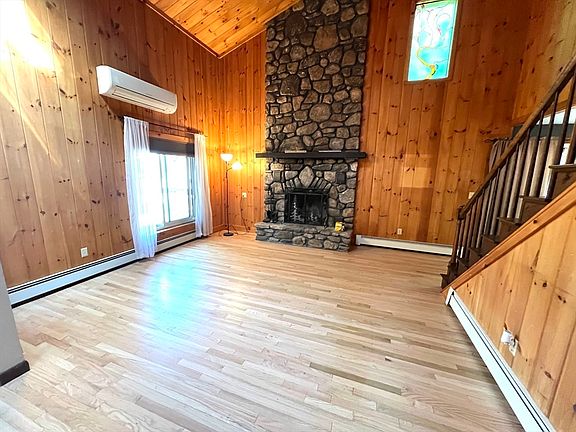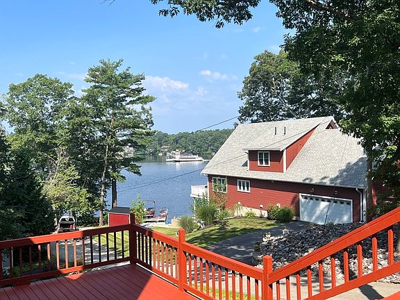 Webster Lake Sunsets can be yours! This 4 bdrm, 4 bath, 2 car gar, with right of way & beautiful views of Webster Lake/Middle Pond. The Multi-tiered decks boast 3 separate access points into the home, ensuring convenience & fluidity between indoor & outdoor spaces. In-Law possibilities!!!Step inside, & you'll discover a living room featuring a wood-lined ceiling & stone FP. Indulge in the spacious kitchen, complete with a separate dining area for your culinary delights. Direct access to the garage & proximity to the kitchen area add convenience and functionality of this inviting space. 2 bdrms on 1st flr and 2 bdrms on 2nd, ensuring ample space for relaxation. The primary bdrm is a sanctuary unto itself, featuring direct access to the deck, double closet, & private bath. Additional finished space in the lower level. 2017 - 4 minisplits added for cooling. Boiler 2017. Whole house generator. Roof approx 12 yrs old. Town water and sewer.