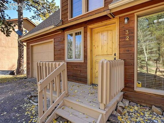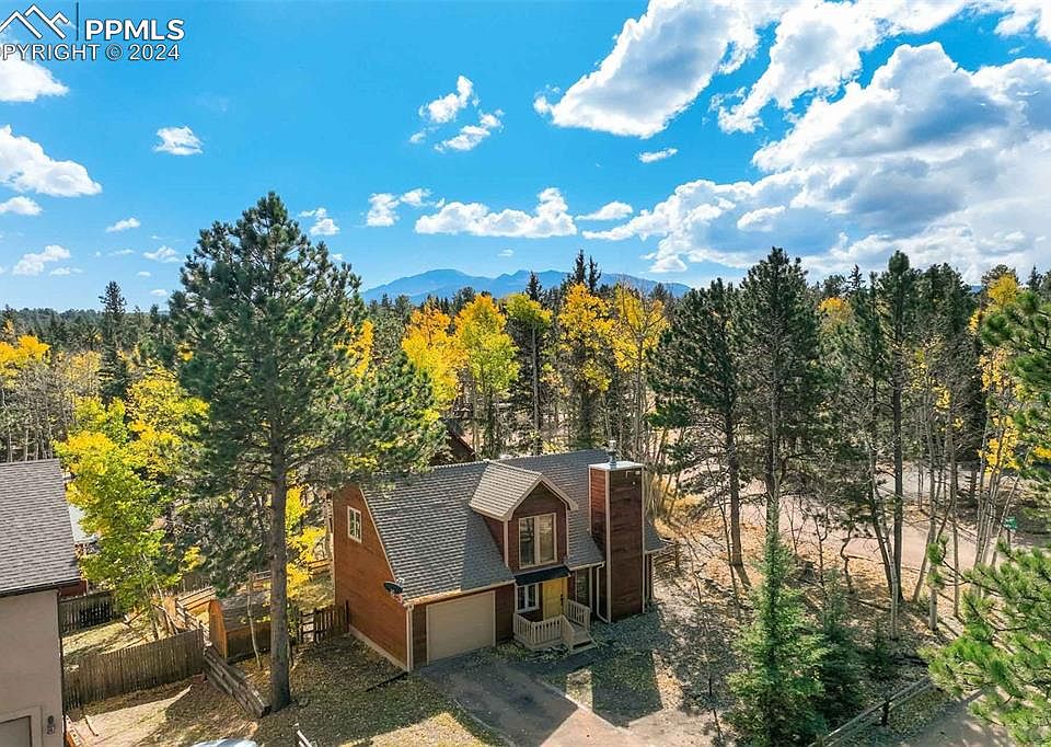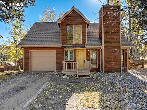 Discover a truly exceptional find in Westwood Lakes, where the beauty of nature pairs perfectly with everyday conveniences! Located on a quiet cul-de-sac and occupying a corner lot, this home offers an inviting sense of privacy. Step inside through the grand alder wood front door and be welcomed by the warmth of natural wood floors and the glow of sunlight pouring in through the many energy-efficient windows, all beneath a soaring vaulted ceiling that amplifies the spaciousness. Imagine cozying up to the decorative freestanding gas stove, nestled in a robust brick hearth, as you savor a quiet evening with your favorite book. The bright dining room invites you to step out onto the deck where the melodies of birds, cool breezes, and endless summer days create the perfect outdoor escape. The galley kitchen comes equipped with a new dishwasher and microwave, while the adjacent laundry area and attached garage add a touch of everyday ease. Upstairs, explore a primary bedroom with dual closets, plus an enclosed loft bedroom with a balcony view over the living room, featuring a safety shield that provides peace of mind. Outside, tasteful landscaping frames the property, enhancing its appeal. The fenced backyard, surrounded by mature trees, provides a private sanctuary that is easy to maintain yet spacious enough for pets, play, and gatherings under the open sky. A convenient storage shed is also ready to house your gear! Lake Ruth, located just around the corner and stocked annually for residents, along with nearby open spaces, trails, and majestic mountain views, creates a sense of a secluded retreat that is only 10 minutes from Woodland Park’s amenities. Situated 40 minutes from Colorado Springs and less than an hour from the airport, this home is ideal for those starting out, families seeking space, or retirees in search of a charming abode that strikes the right balance of comfort and manageability. Visit today and imagine the endless possibilities that await you!