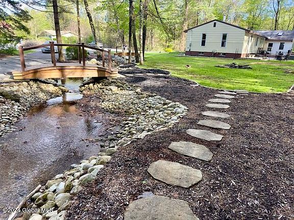 $10,000 CREDIT AT CLOSING!! This charming ranch-style home boasts 3 bedrooms, two full bathrooms, and an idyllic park-like setting at the end of a cul-de-sac. fully finished basement and bonus Adirondack family room on the back of the home featuring a gas fireplace. Complete privacy and serenity. Extra driveway space with Boat/RV storage and hot tub. There is a babbling brook that adds to the serene ambiance. heated garage/workshop.