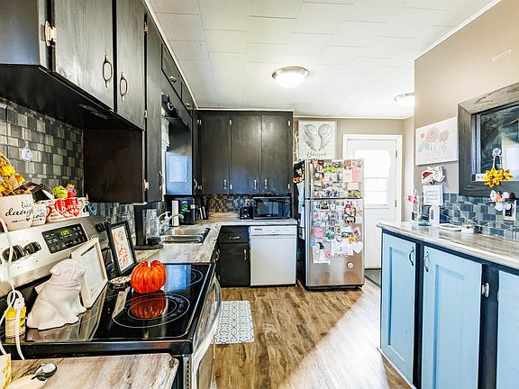 This bungalow is in a prime location, just 5 minutes from town! A perfect 3 bedroom, 1 bathroom, family home with a nice, private yard surrounded by trees and a 16' x 12' shed. It features nice laminate flooring, an updated bathroom, a large primary bedroom and a well that hasn't went dry. You'll be sure to cozy up in the living room this winter in front of the wood insert fireplace! The ductless heat pumps on both levels will keep you cool in the summer. The main level consists of a galley kitchen with dining space, large living room, primary bedroom, 2nd bedroom and bathroom. Downstairs opens up to a large den area with the 3rd bedroom, laundry room, storage room and utility room. If you've been waiting for a nice affordable home just outside of town, this is it!