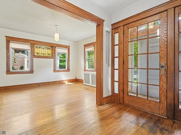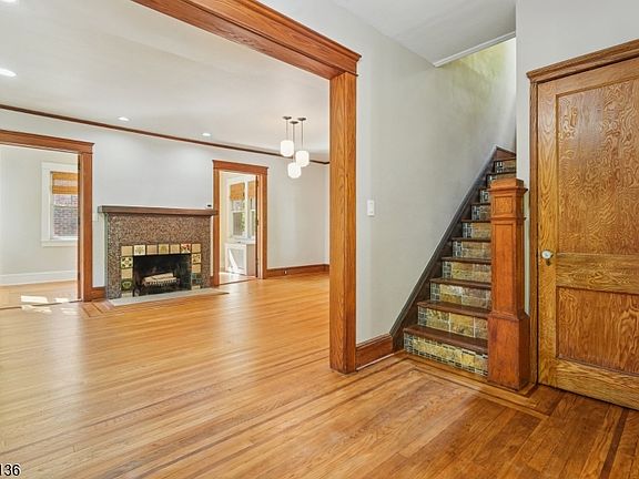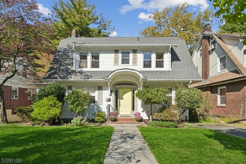 Welcome to this timeless east hill Colonial with craftsman touches & tasteful modern updates. Approach on blue stone walkway to entry portico w/ sidelights & transom. First floor w/ inlaid hard wood floors offers foyer with closet, airy living room w/ wood burning fireplace, french doors leading to sun room, formal dining room w/ leaded glass window, custom kitchen w/ Bosch & GE appliances, granite counters, ceramic floor & glass tile backsplash. Powder room completes the first floor. Continue to second fl via embellished stairs to primary bedroom with two closets, full bath, linen closet, and two more spacious bedrooms. Lower level has bedroom, full bath, recreation room, storage room, bonus room, utility, and laundry. Relax in terraced private yard with serene Koi pond & expansive patio with gas hook up for grill, ideal for entertaining. Long driveway with dedicated EV charge outlet leads to detached garage with new windows and bike racks accessible w/keypad opener. Convenient to public transit, 3 miles to Manhattan & steps to everything the sweet town of Leonia offers.