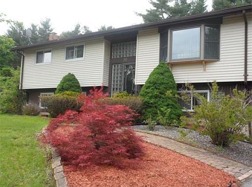 Spacious beautiful house in a quiet area of Sharon! Lots of updates including new heating system (2013), new water heater (2011), new interior paint, new roof above sun room. Vinyl siding. Two zones of gas heat and central A/C. Hardwood floors throughout upper level. Tiled entrance foyer. Beautiful large remodeled open kitchen with skylight, granite counter tops, breakfast island, Bosch appliances. Three bedrooms upstairs with ample closet space. Full finished walk-out basement with possible 4th bedroom and second kitchen. Cozy family room downstairs with wood burning fireplace. One car garage. Large swimming pool with brand new lining. New vinyl fence surrounding the pool. Water filter for the whole house. All SHOWINGS START AT OPEN HOUSE on Sunday, June 1 from 12:00 pm to 2:00 pm.