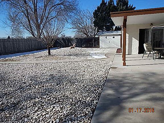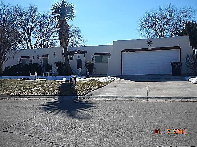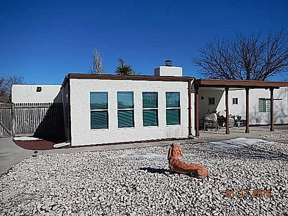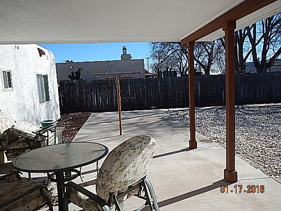 Classic New Mexico Territorial style home w/ spacious, light filled rooms & a cozy fireplace. Large eat-in kitchen + all the appliances. Double pane windows; New Furnace 2014; New Dryer 2015. The pristine exterior has been recently re-stuccoed. The yard is beautifully landscaped in front; with easy care Xero-scape in the back. A large covered patio in back is perfect for entertaining. A tidy yard barn in back- perfect for lawn tools. This is a well maintained home in a lovely tree lined neighborhood.