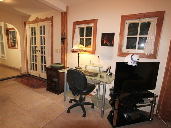 IDYLLIC RETREAT IN BLITHEDALE REDWOODS Fully or partially furnished if desired. Lease term flexible Pleasant, easy walk to village. Near hiking trails to Mt. Tamalpais. Recently renovated. Private, cottage-feel, second unit at lower front of two-unit home. French door entry from deck, view of forest and distant hills. Southern exposure with filtered sun through the redwoods. L-shaped living room can accommodate a large couch and also has a comfy reading nook with access to a bonus storage area. Elongated living area also has space for dining table and office furniture. Bedroom is loft style up a couple of steps and open to living area through cedar/trimmed arches with optional curtains. New bar-style kitchen sports cherry cabinets, glass shelving, mirrors and black sparkling granite countertops, stainless steel appliances. Power burner gas cooktop, multi-function convection/microwave oven. Undercounter full refrigerator, separate full freezer unit, dishwasher, designer deep sink. Bathroom has sunken bathtub with shower and sliding glass doors, large vanity cabinet sink and additional wall storage cabinet, natural travertine floor and walls with glass tile finishes. Private laundry room off hallway has full-size washer and gas dryer, pantry unit, deep storage closet and additional shelving areas. NOTE: One off-street parking space is provided near base of windy, concrete driveway (tenant may drive up to front of unit to drop off guests, groceries, etc.). Access is presently by foot up driveway, however a garden stairway / pathway is nearing completion. Please respond with details about yourself and any other occupants, any pets, projected move in date, length of term desired, etc. and phone number. Includes water and refuse service.